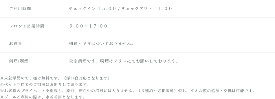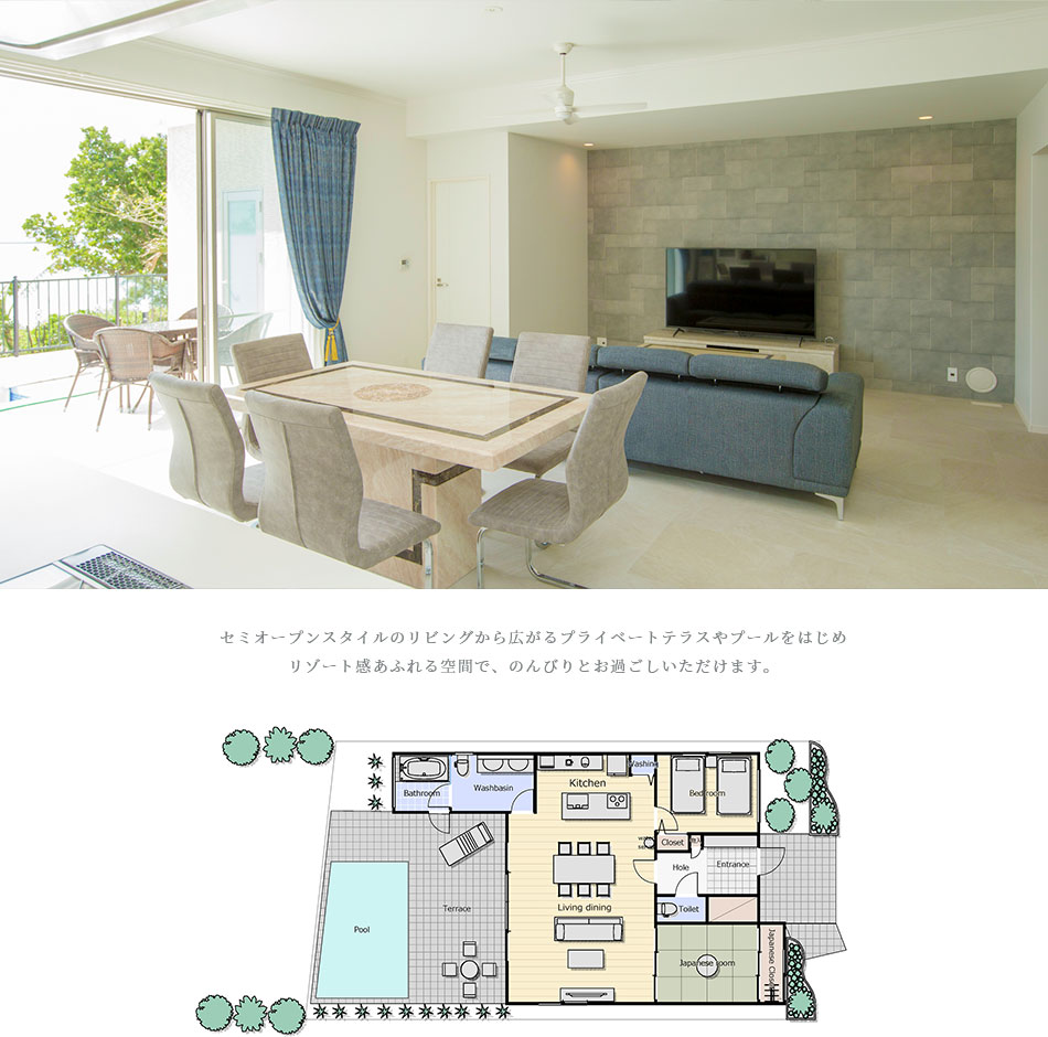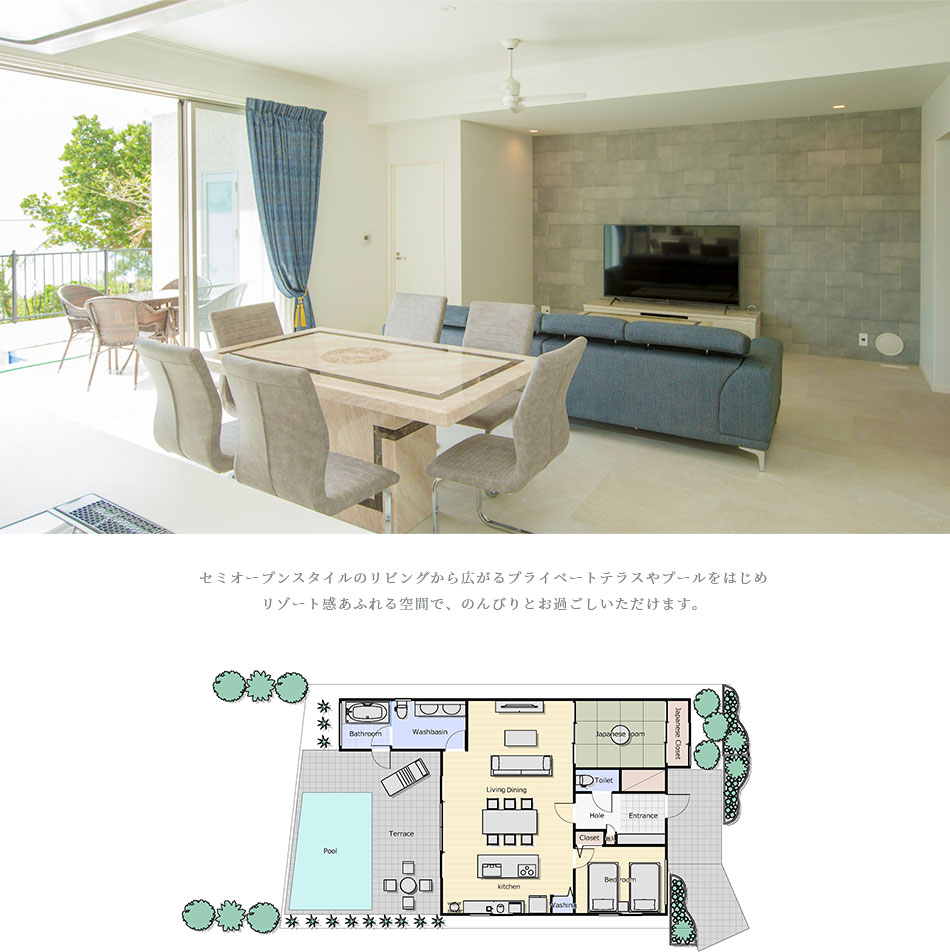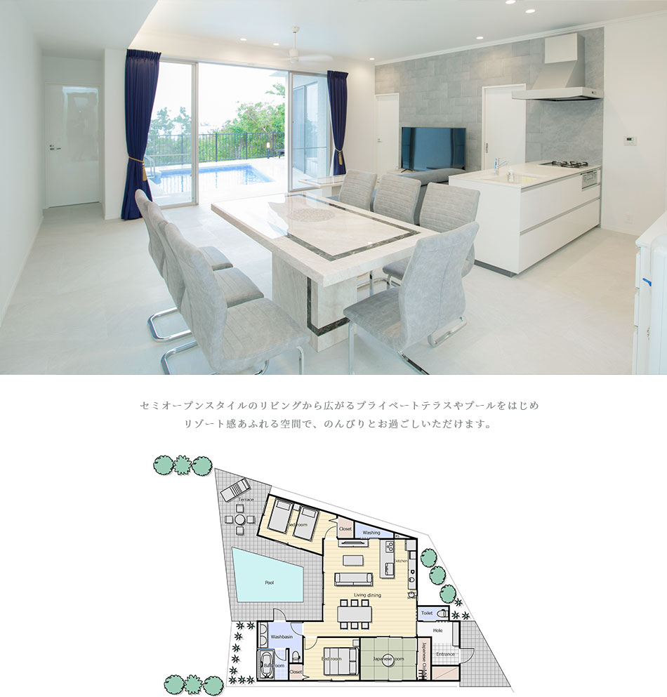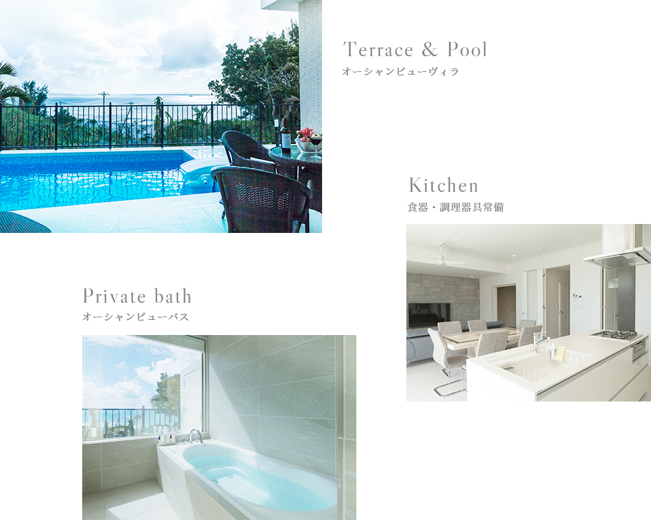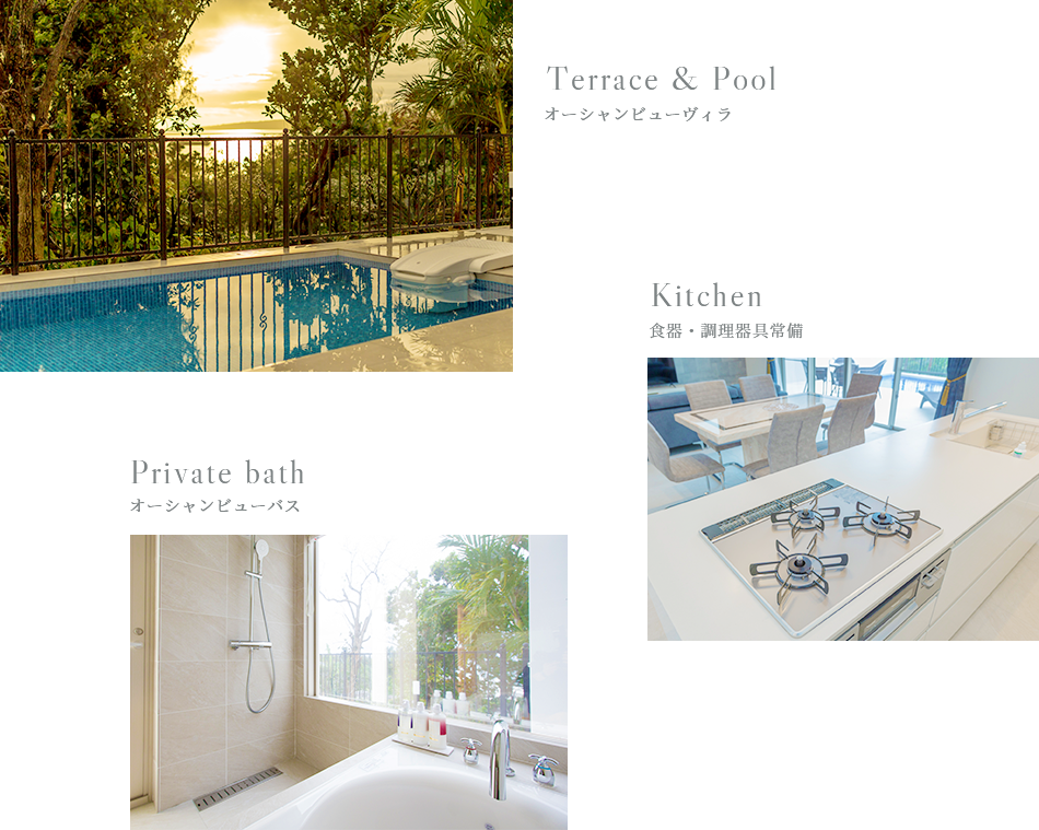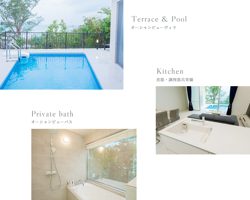 当館には3つのヴィラを設けており、全てのヴィラにプールや本格的なキッチンをご用意しております。