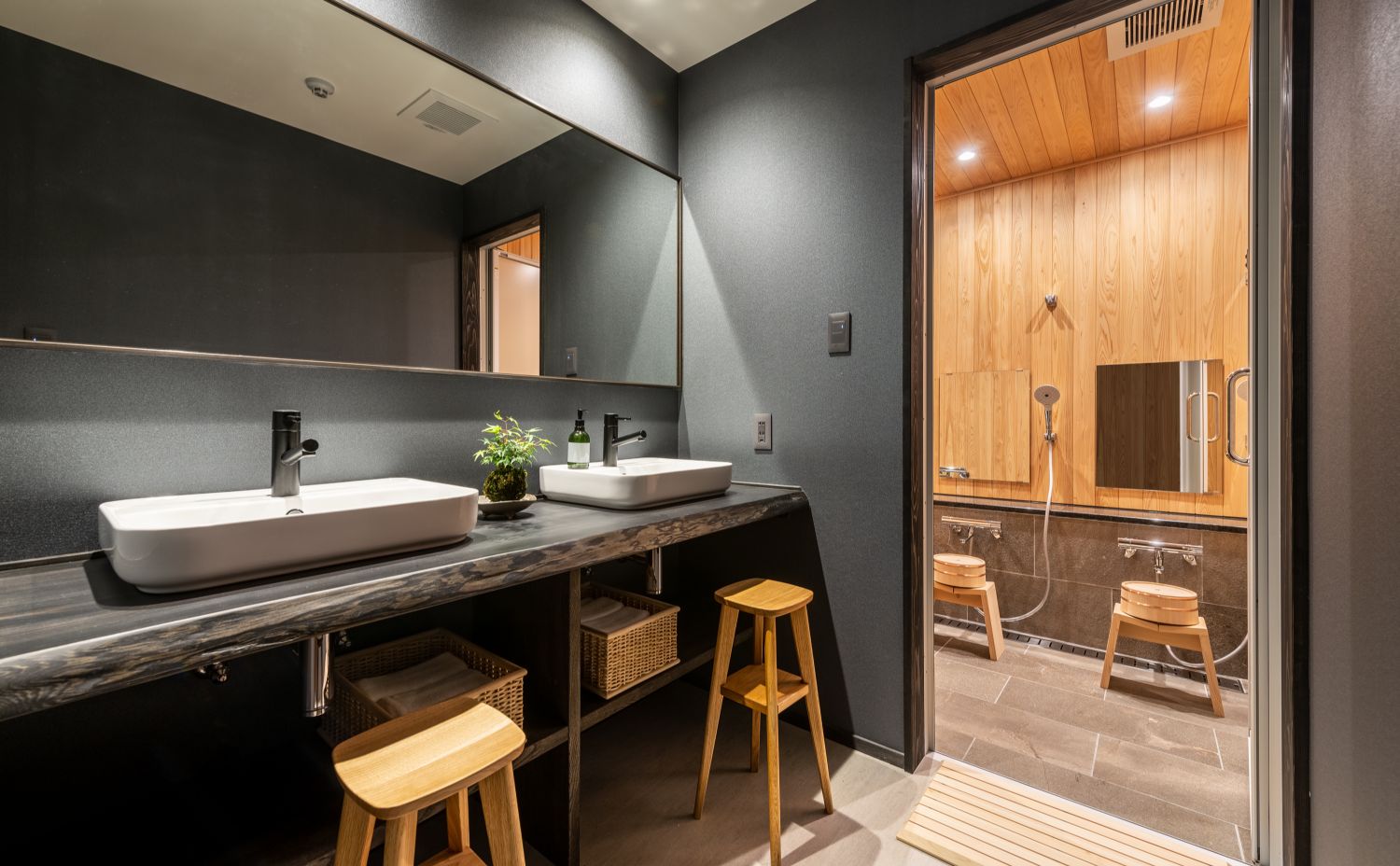 癒しの美容家電や地元岐阜のメーカーのバスアメニティも揃え、湯船にはヒノキの爽やかな薫りを放つヒノキボールが浮かびます。飛騨高山の自然を感じながら、心と身体を満たす上質なリラックスタイムを。