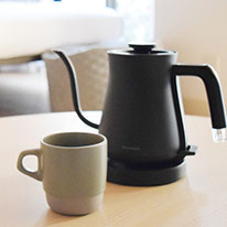 全室バリュミューダの電気ポットを完備。お茶も備えてございますので、寛ぎのひとときをお過ごしください。