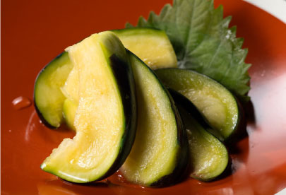 果物のようなみずみずしさが特徴の泉州の特産水ナス。そんな水ナスのじゅわっと美味しいお漬物です。