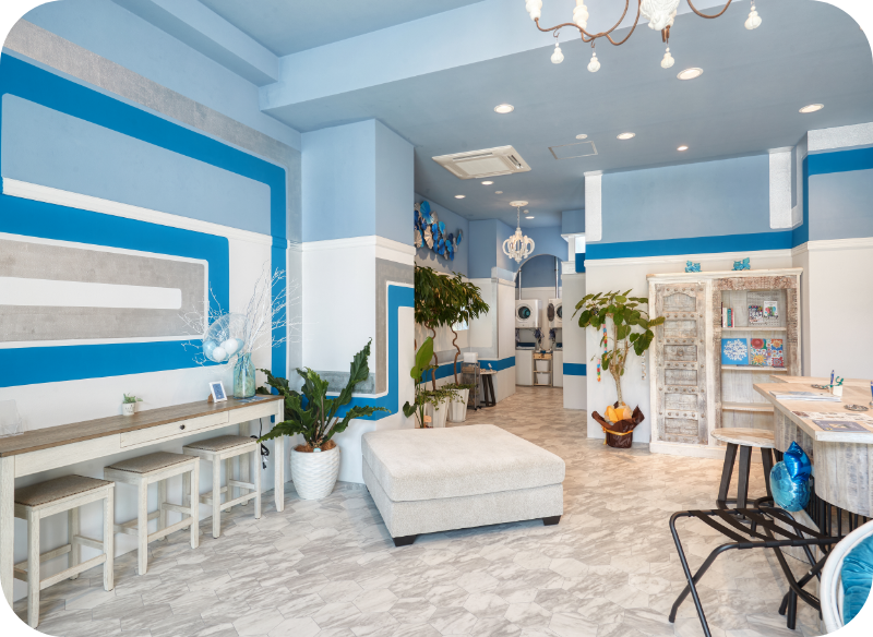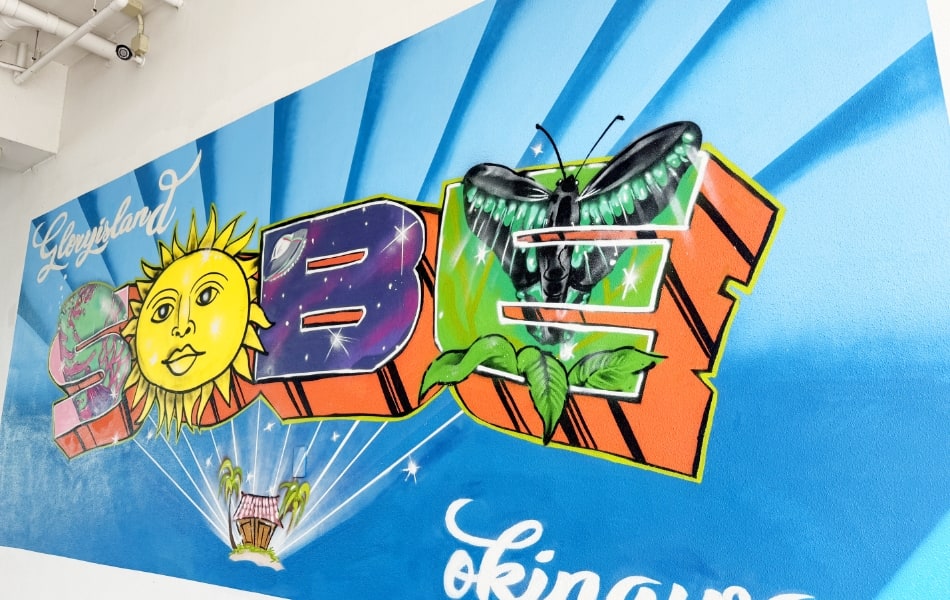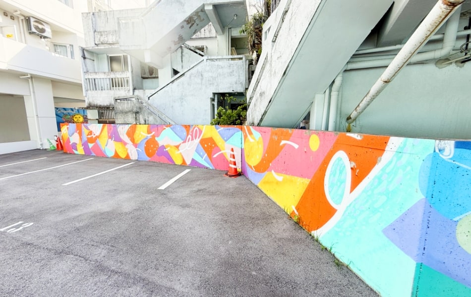 駐車場や、ロビーなどにも壁画アートを施し、来てくれるお客様をワクワクさせる演出を行っております。