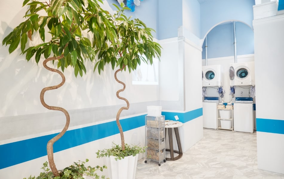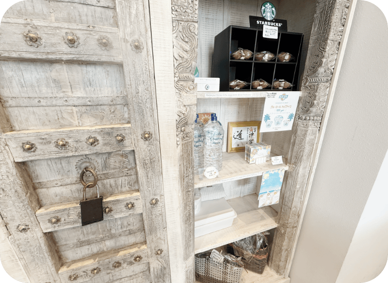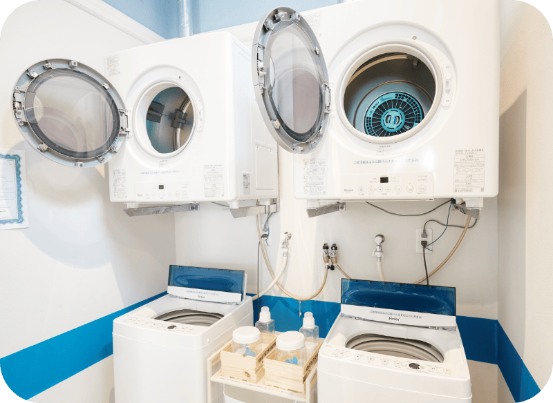 1階はレセプションのほか、24時間無料でご利用いただけるランドリールームやワークスペース、ミニショップがございます。