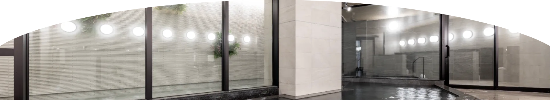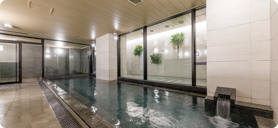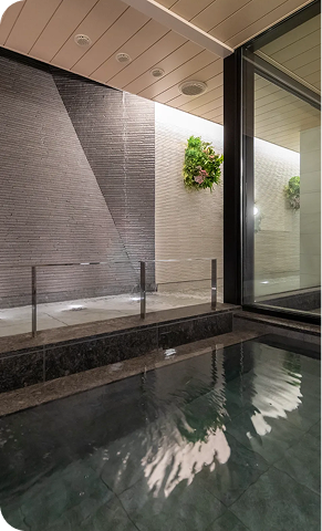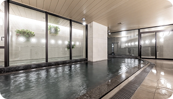 男湯・女湯ともに内風呂・半露天風呂をご用意。広々と大きな内風呂でゆったりと身体をのばしてお寛ぎください。