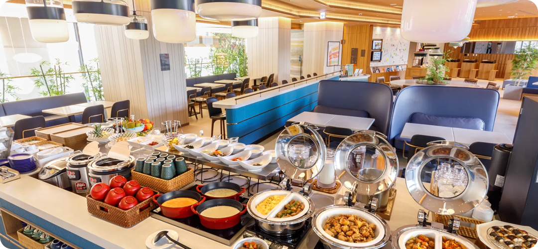 ホテル1Fの「カクウチ&カフェ CROOM STAND」はご宿泊のお客様に限らず、どなたでも気軽にご利用いただける、セルフスタイルのカフェバーです。