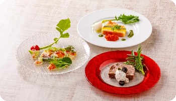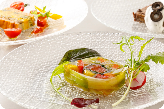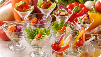 福岡の野菜を中心とした食材と、自家製パンやスープ・日替わりテリーヌなどを取り揃えたお料理を、ブッフェ形式でおとどけします。