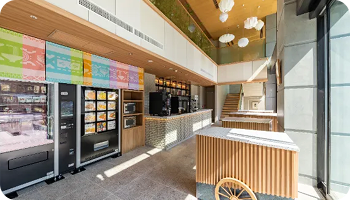 福岡のワインや生ビール、おつまみ自販機がございます。地元の食を囲んで、自然と交流が生まれる、屋台のような感覚でお楽しみください。