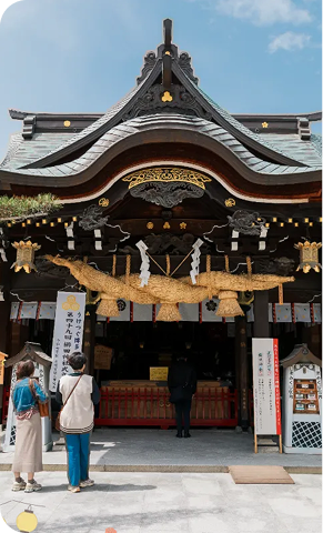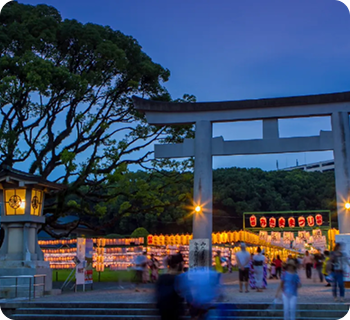 博多の総鎮守として、「お櫛田さん」の愛称で広く市民から親しまれている神社。奉納される博多祇園山笠は、博多の夏の風物詩として全国的にも有名です。