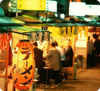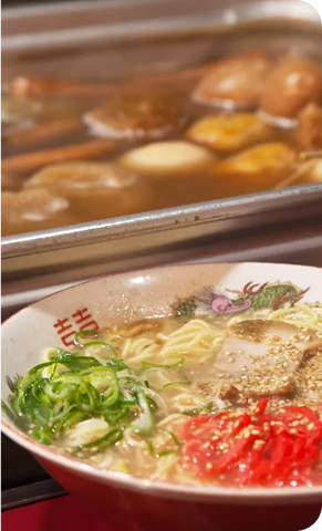 昼間は何もない歩道に、どこからともなく現れて福岡の夜を彩る屋台。約100軒も屋台があるのは、全国でも福岡だけ!屋台の定番は、ラーメンやおでん、焼き鳥。そのほかにも、個性的な屋台が誕生して、バラエティ豊かです。