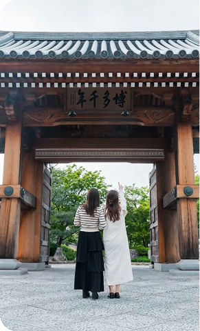 「博多旧市街」とは、日本中世最大の貿易港湾都市・博多の中心として栄えた地域。歴史ある寺社が連なる静寂なまち並みを散策できます。