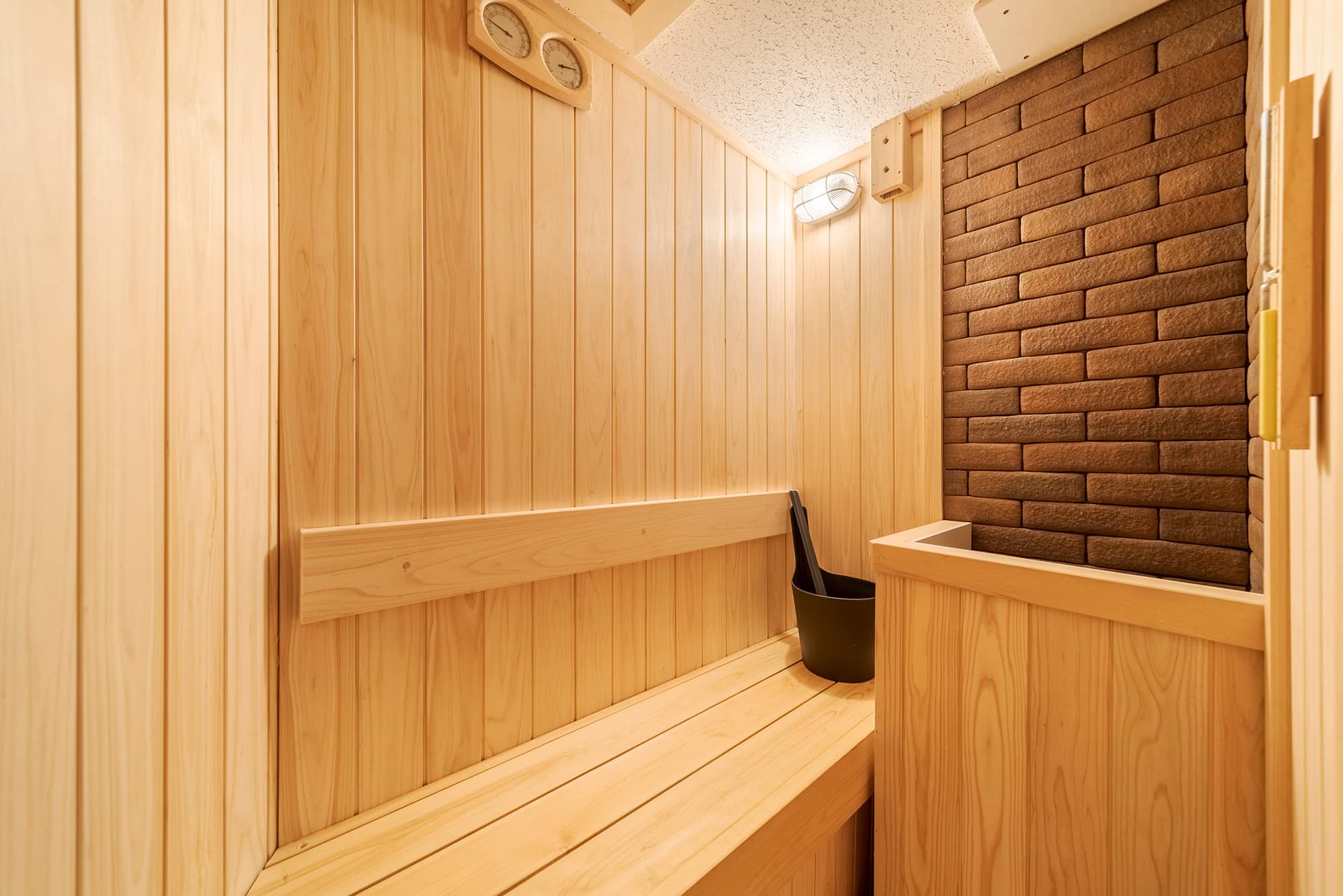 国産ヒノキを使った金沢の大自然に囲まれるようなプライベートサウナを完備。セルフロウリュでお好みに合わせてお楽しみください。サウナルームのそばにシャワールームとインフィニティチェアを備え、いつでも自由に「ととのう」体験をご堪能いただけます。(サウナプラン要予約)