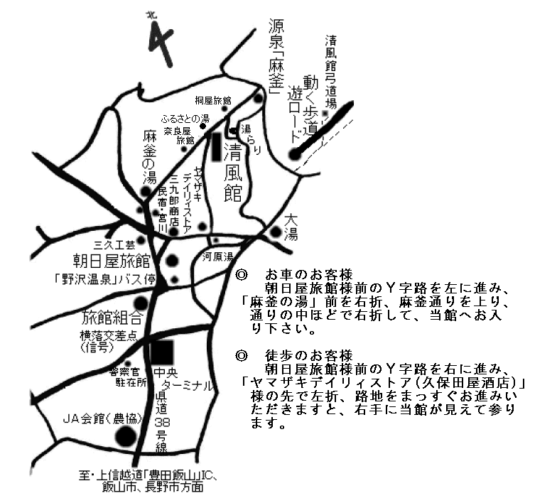 温泉街に入りましたら、どうぞ、下図を御参照下さいませ。