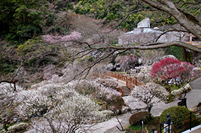 日本一早咲きの梅で知られる熱海梅園。樹齢100年を越える梅の古木を含め、60品種・469本の梅が咲き誇り、例年1月の上旬より3月の上旬まで梅まつりを開催しています。毎年沢山の人で賑わいます。