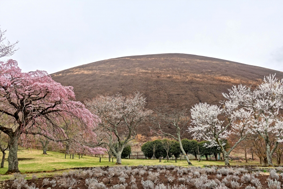 大室山の麓にあるさくらの里。約40種・約1,000本の桜が植えられています。4月上旬にはピンク色の花びらのソメイヨシノが40,000㎡の敷地を埋め尽くします。さくら名所100選の1つです。