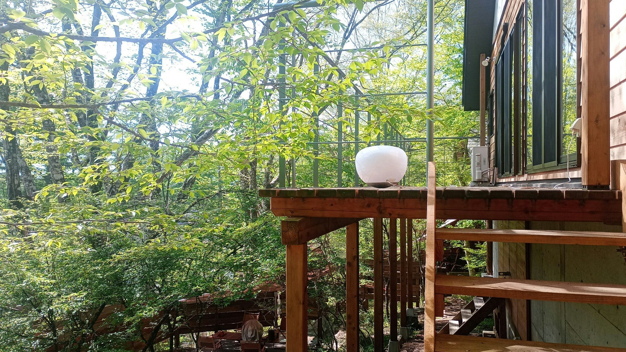 お料理、BBQ、ティータイム、ヨガ・・と使い方は多様です。向こうに見えるのがサウナ小屋。