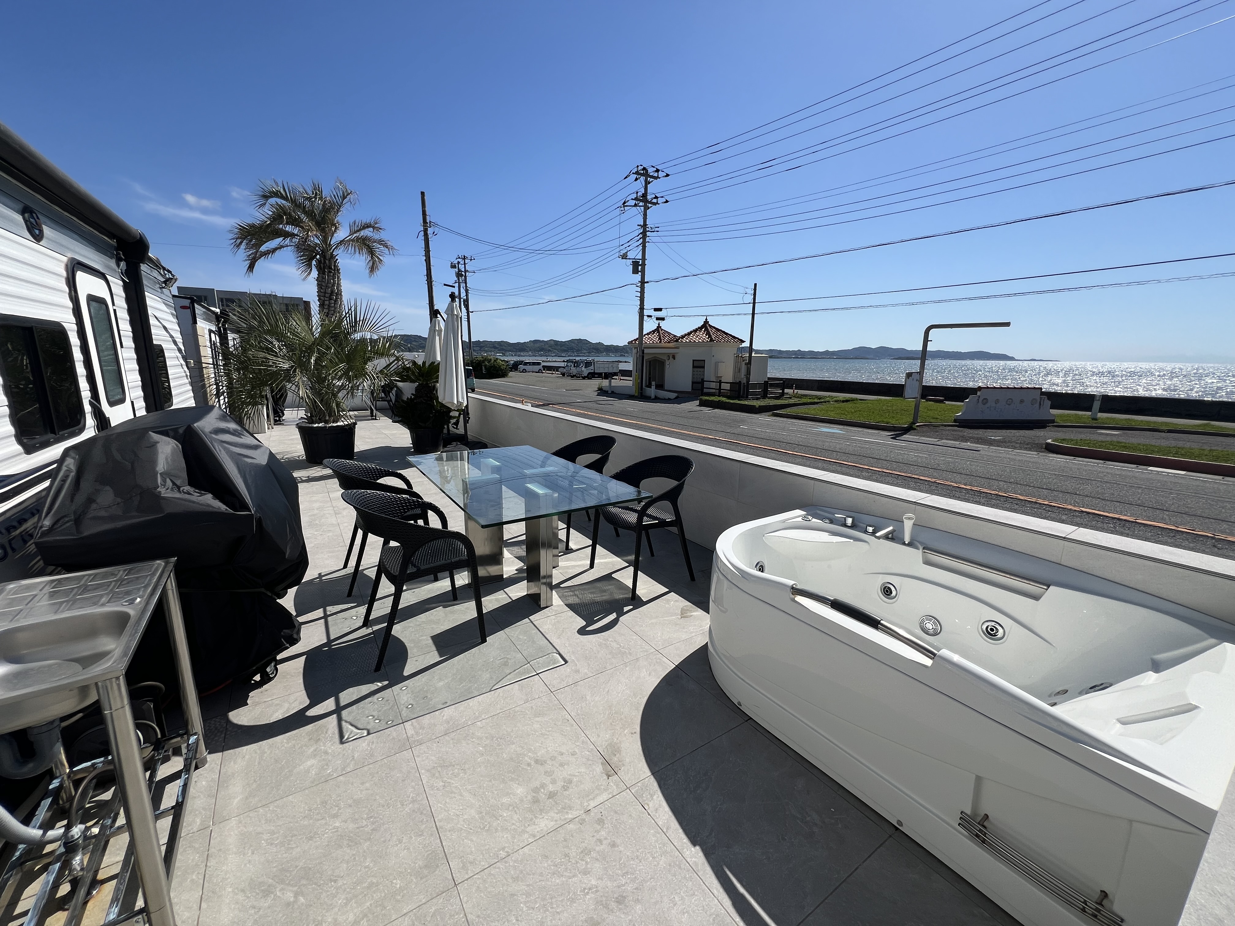 【TRAILER-A】ジャグジー付ヴィラ/海を眺めながら、バーベキューや日光浴を楽しめます(棟一例)
