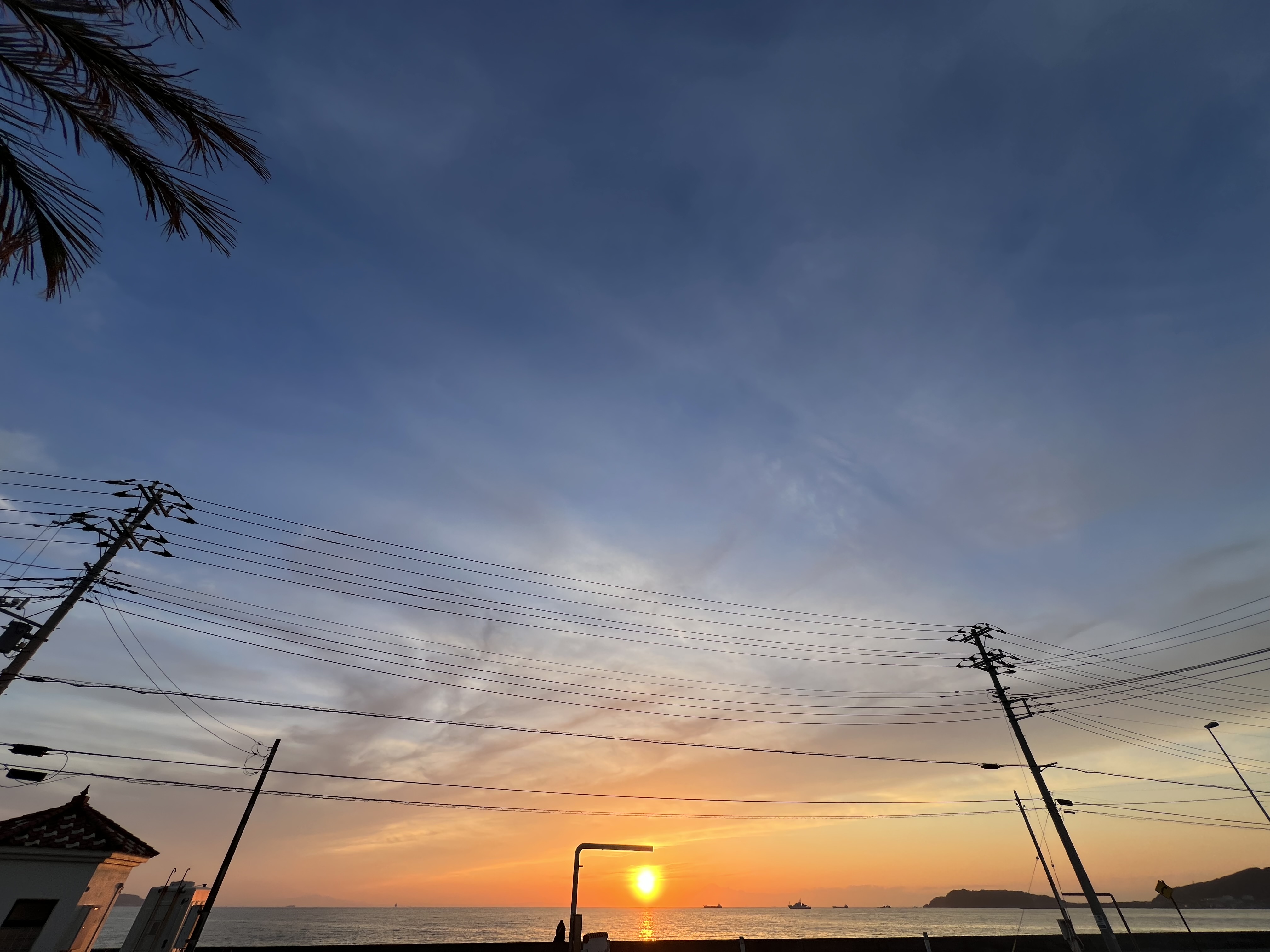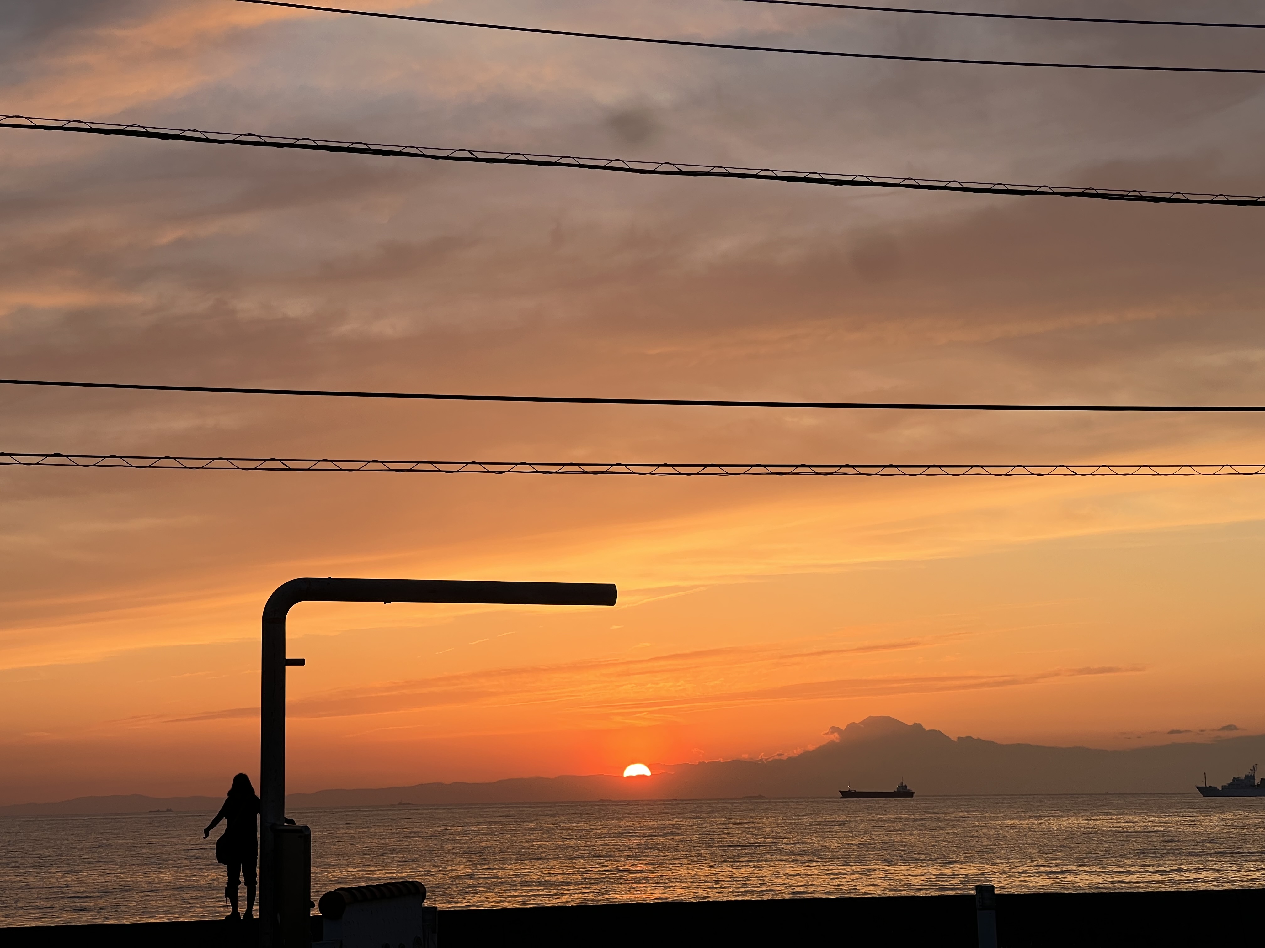 北条海岸/夕方に館山湾の向こうへ沈む夕日は、あたり一面をオレンジ色に染め、その光景は格別です