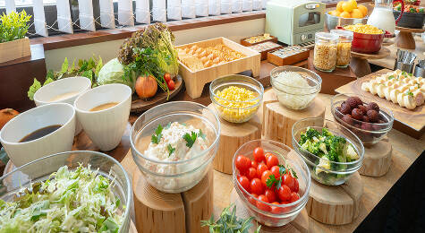 和洋折衷、色とりどりの前菜と新鮮なサラダコーナー