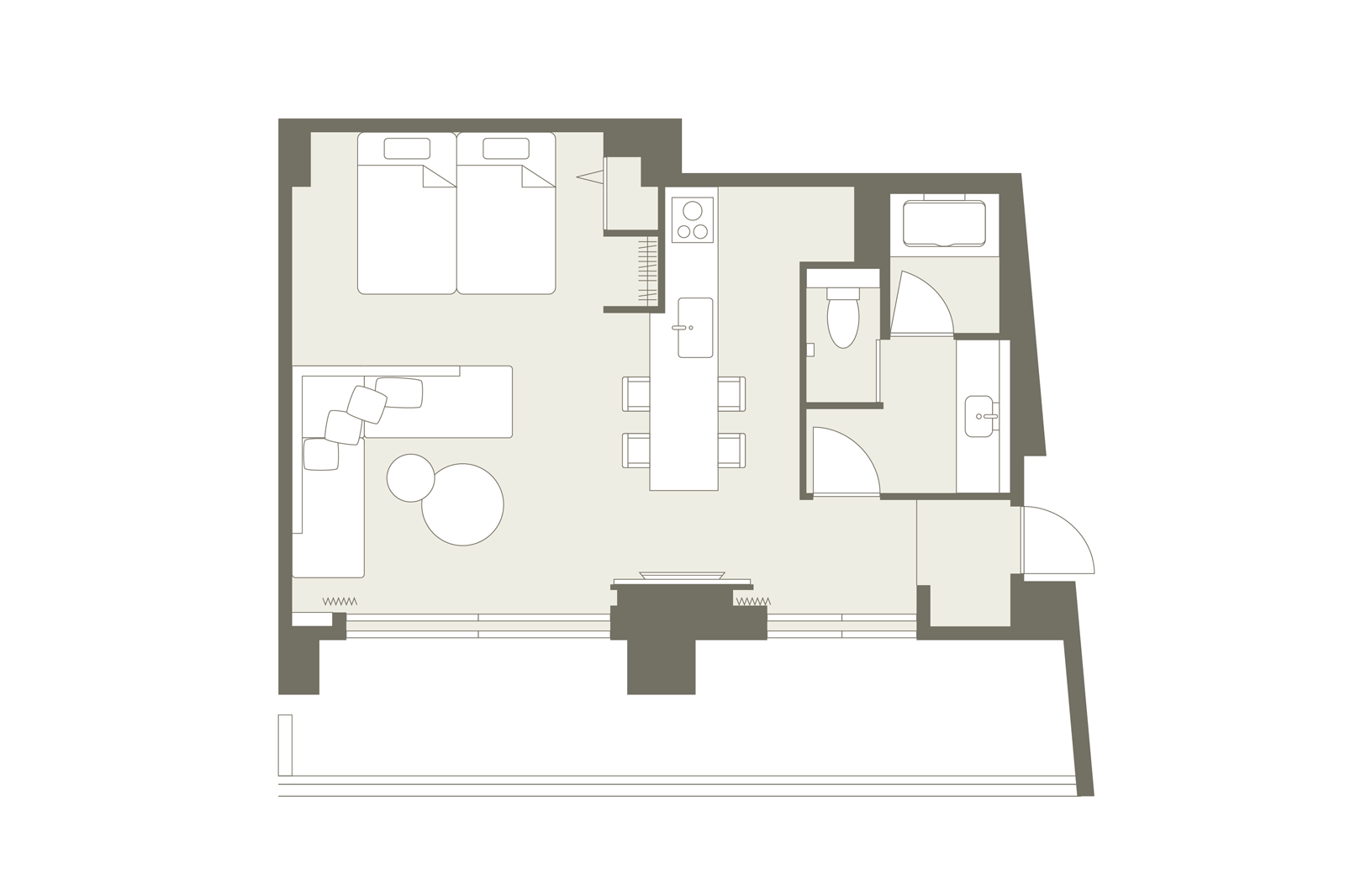 ※お部屋の間取りはあくまで一例です。面積や家具の配置、備品などはお部屋により異なりますので、あらかじめご了承ください。