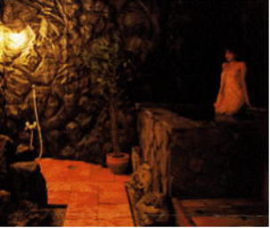 湯船は、水中照明で幻想的に4色に輝き、天上岩の裂け目からは、したたるうたせ湯も!ちょっと変わった露天風呂! |