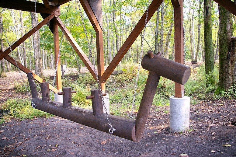 引戸を開けると、おなじみのブランコがお出迎え。...