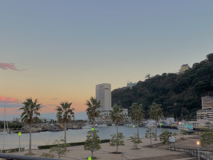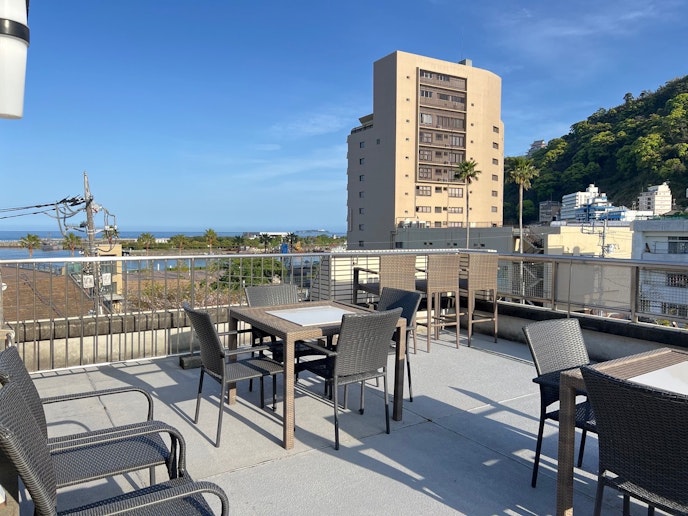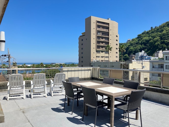 ・【風景】4階テラスからの眺め。山と海の距離が近いのが熱海の地形の特徴。熱海城も見えます