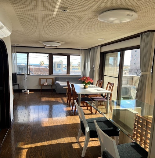 ・【3階リビングダイニング】2つのダイニングテーブル。8名様で一緒にお食事できます