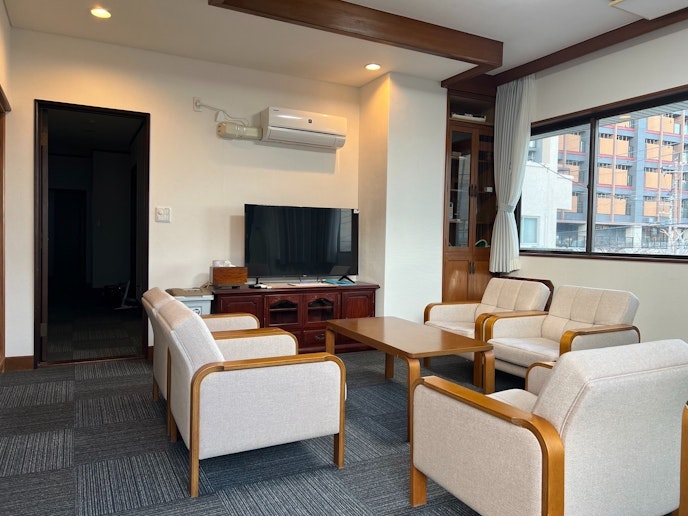 ・【2階リビングダイニング】ソファやテレビを完備しており、ゆったりお寛ぎいただけます
