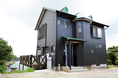 緑の屋根、黒い壁が目印です玄関に横付けする形で、車が2台停められます【民泊】