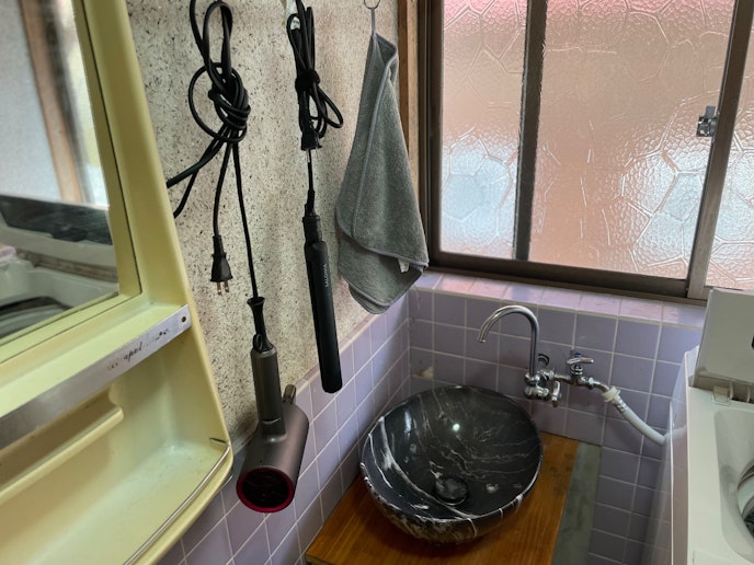 バスタオル、フェイスタオル、歯ブラシ、ドライヤー、ヘアアイロンご用意しています