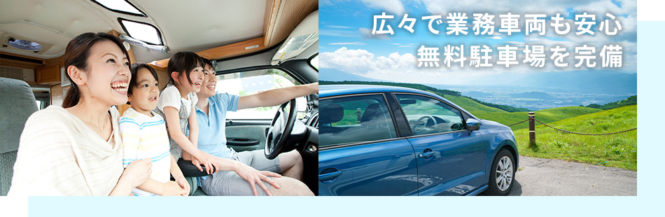 ■敷地内駐車場 ①台数:45台 ②料金:無料 ③利用方法:先着順 ※事前予約はできません ④制限:中型車以上は事前に申し込み要 ※状況によってはお断りする場合がございますのでご了承ください。 ■提携駐車場 なし ※ホテル駐車場が満車の場合は、フロントにお越しください。