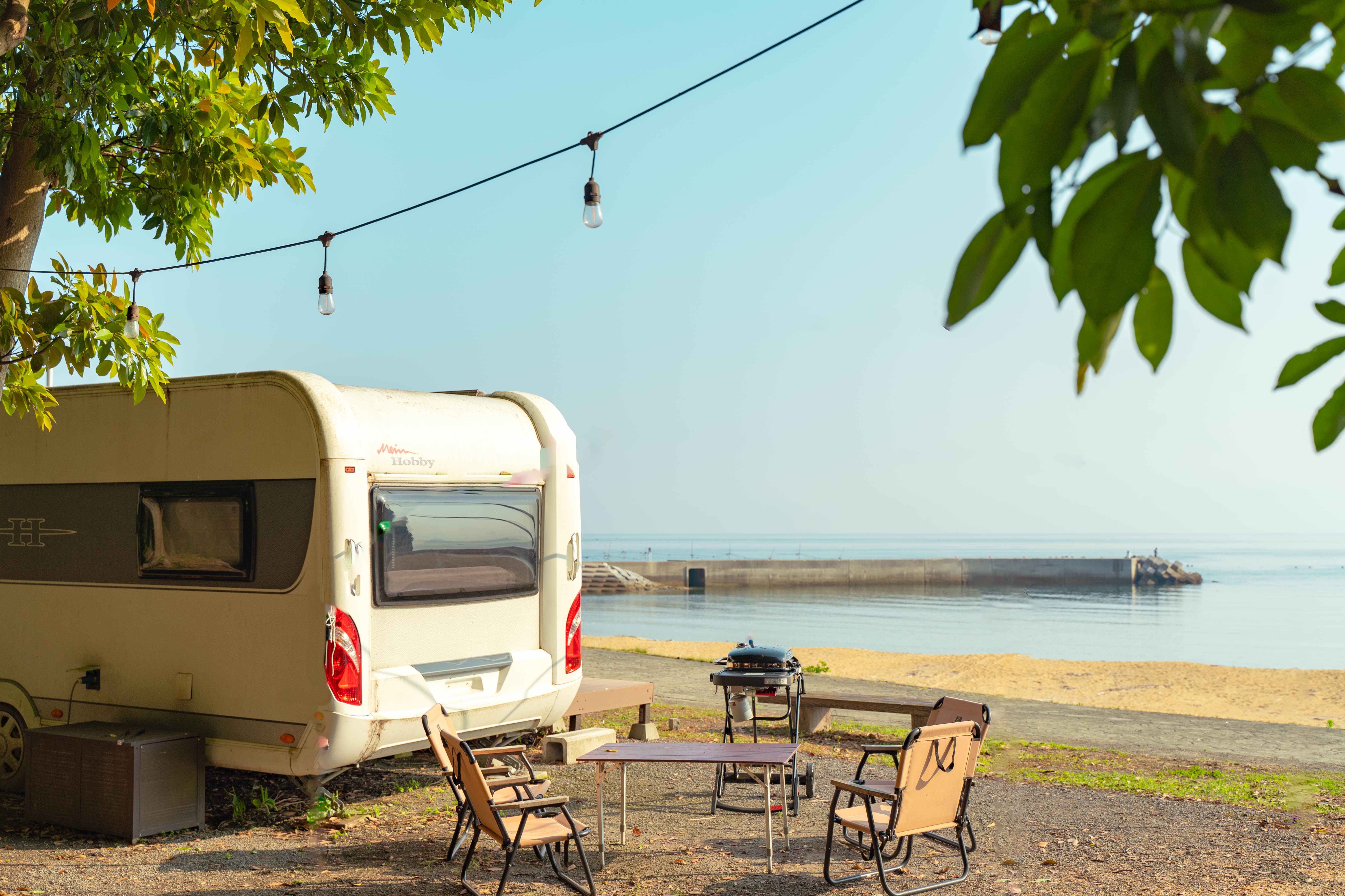 海水浴場内にあるグランピング施設。海まで徒歩10秒のロケーションで、時間を忘れたアウトドア体験を。