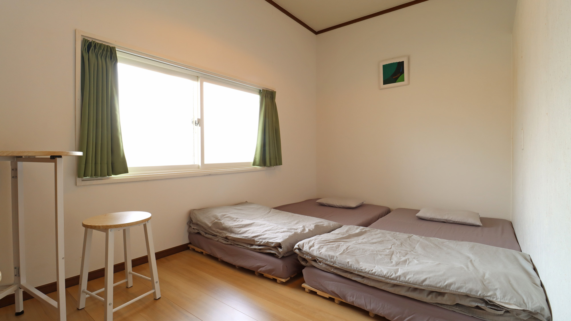 - 共用キッチン、空冷蔵庫、電子レンジ、湯沸かしポット、空気清浄機、金庫(1Fドミトリーのみ)完備。