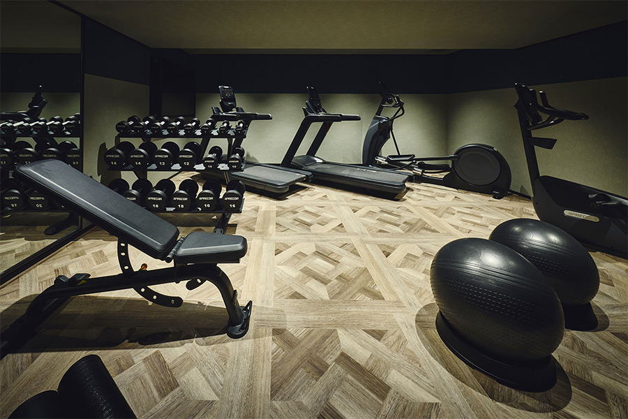 ランニングマシンやクロストレーナー、ダンベルなどを備えた宿泊者専用のジムを完備。