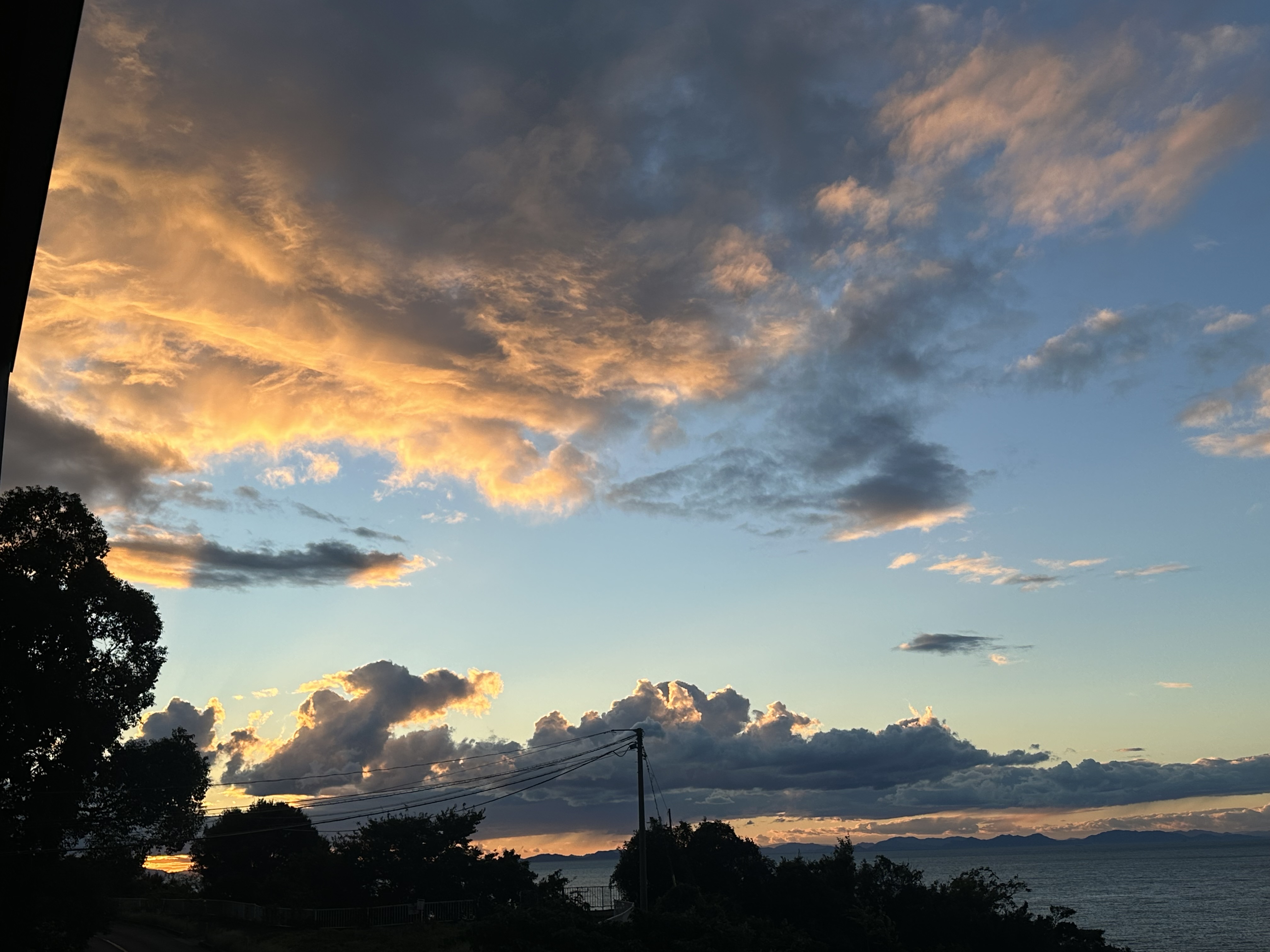 額縁のようなテラスから望む瀬戸内の夕日 Sunset over the Seto Inland Se