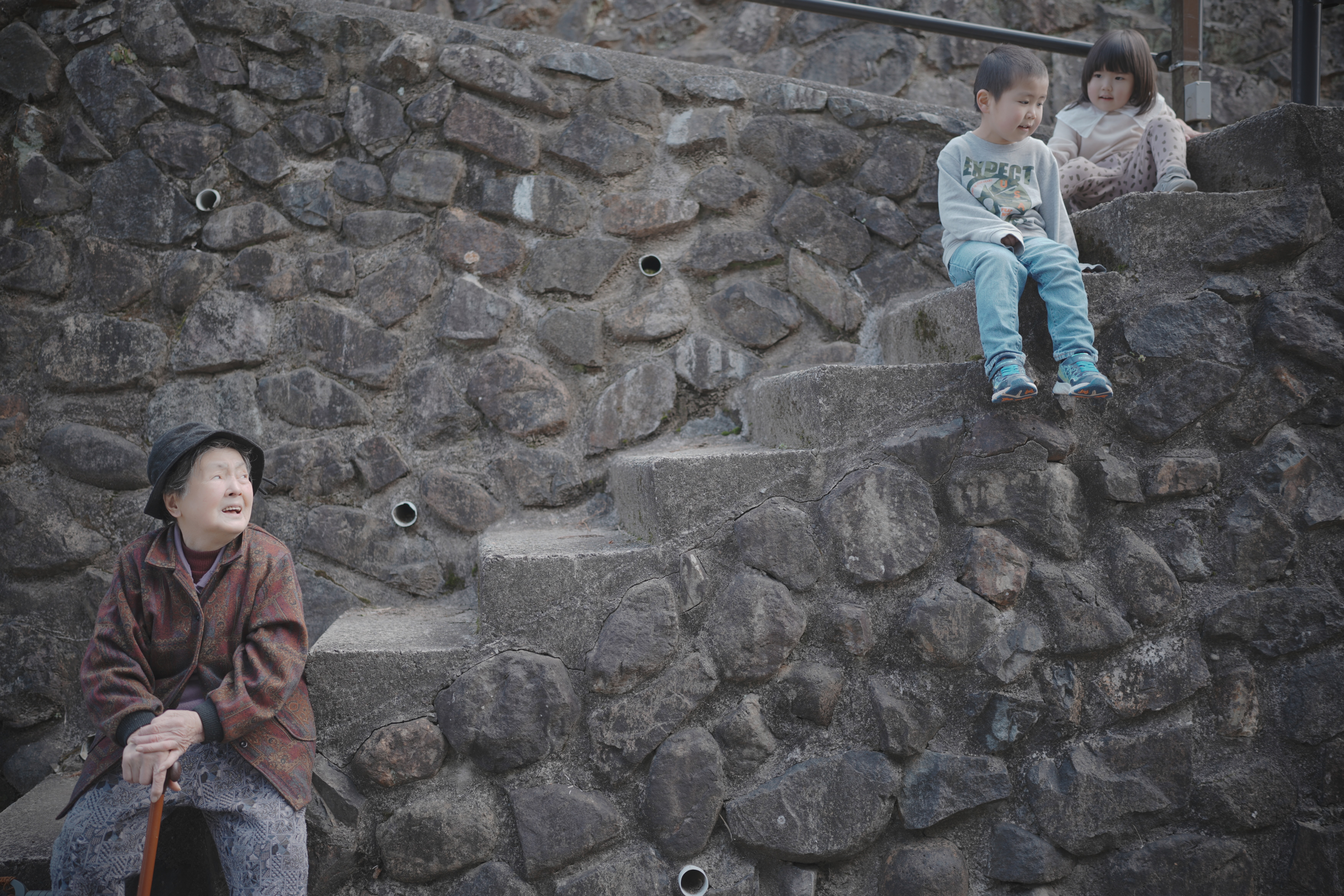 囲炉裏を囲んで家族団らん
