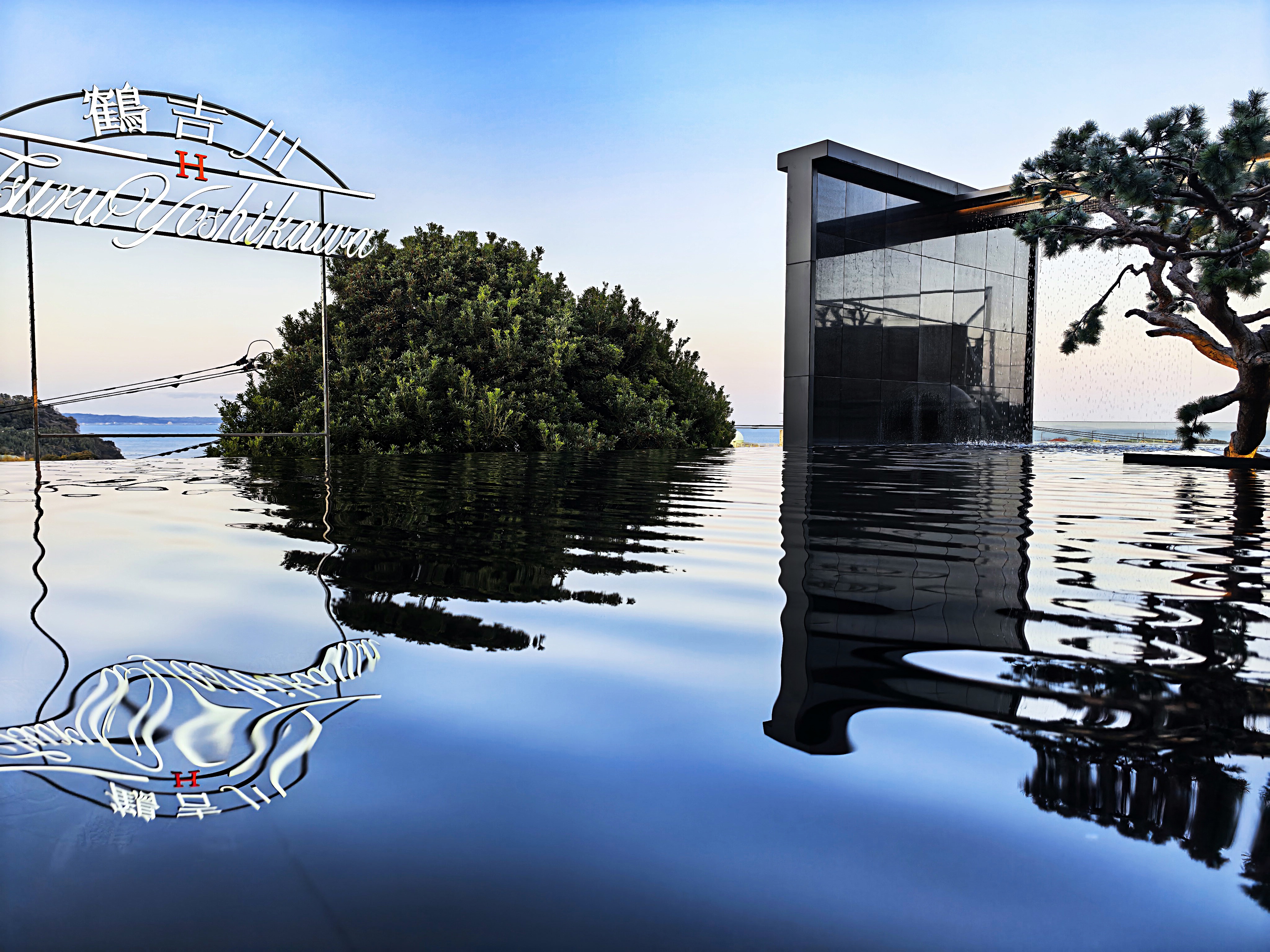 ・【客室:《磯鵯》専用庭園】お部屋直結の庭園に備えた水盤は空を写す鏡のようです