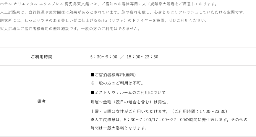 ホテルオリエンタルエクスプレス鹿児島天文館 館内施設