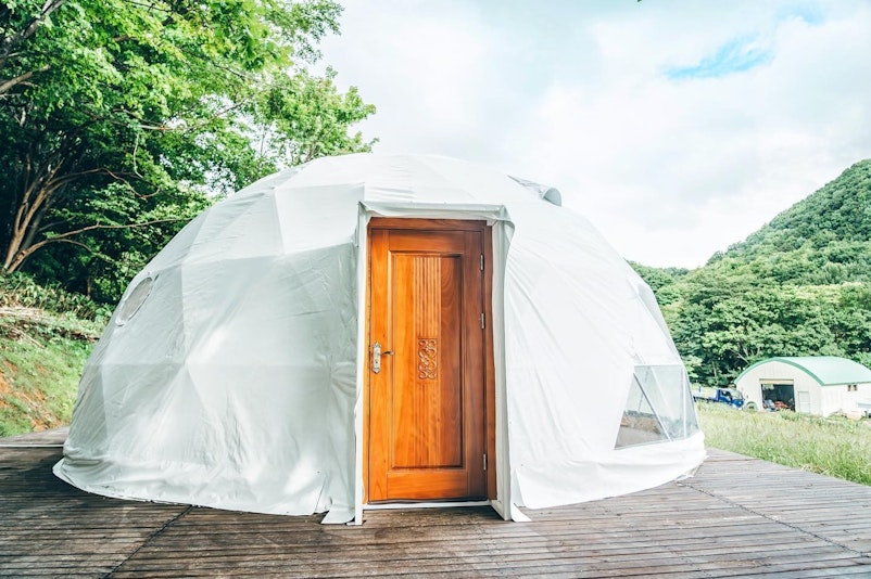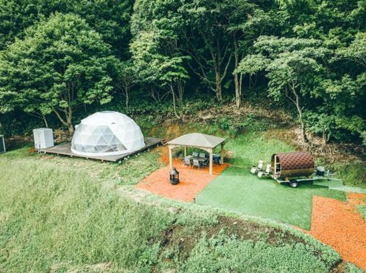 ・札幌の中心部から車で20分・里山に囲まれた絶景グランピング・本格バレルサウナ付き