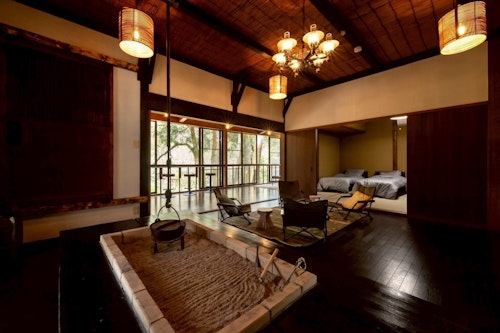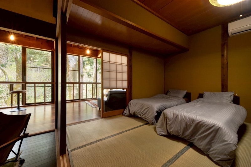 大きな窓の下には大杉谷川が流れています。窓からの景色は絶景!川の音、鳥の声、風の音…