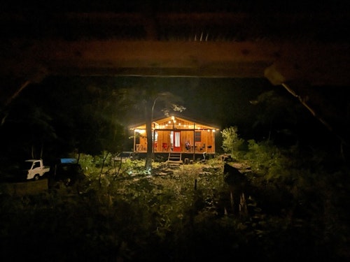 標高1050mの北軽井沢の森の中にあるコテージ。BBQして焚火をしながら星を観て。