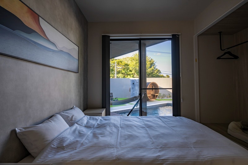 伊豆大室山近くの一棟貸切宿。プール、天然温泉、プライベートサウナ、BBQを完備。中型犬以下2匹まで宿泊可(有料)。