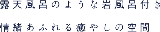 源泉かけ流しの天然温泉は、和室のみ露天風呂のような岩風呂になっております。