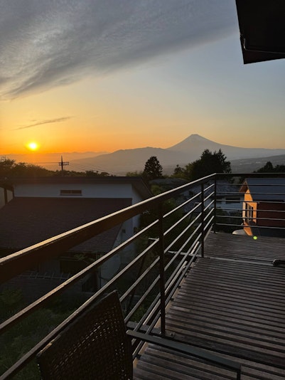 温泉が自慢の宿。最大9名様宿泊可能。富士山を望むバルコニー、フルキッチンで料理も楽しめます。