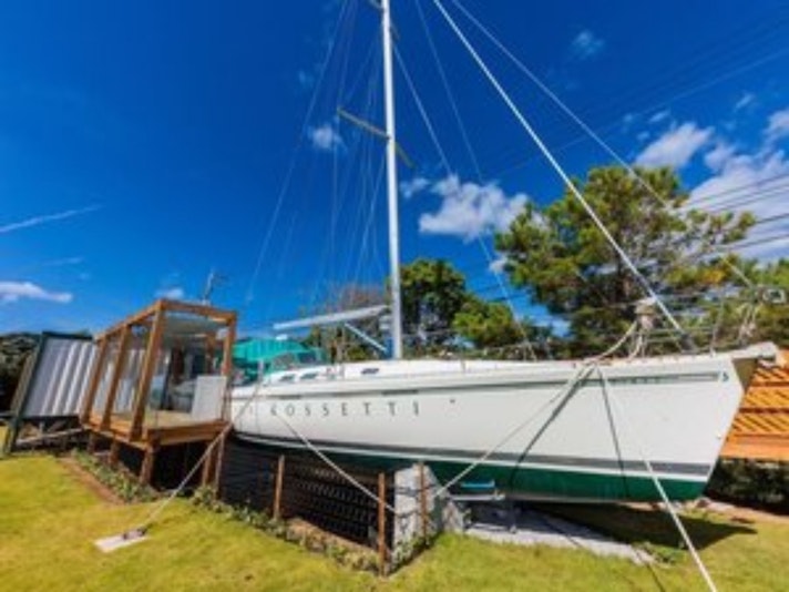コンテナ、ヨット、木造離れ全4棟。個性的な客室で非日常体験を。日本唯一の3Dプリンタ製サウナも。