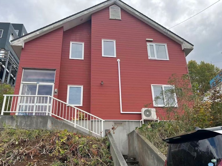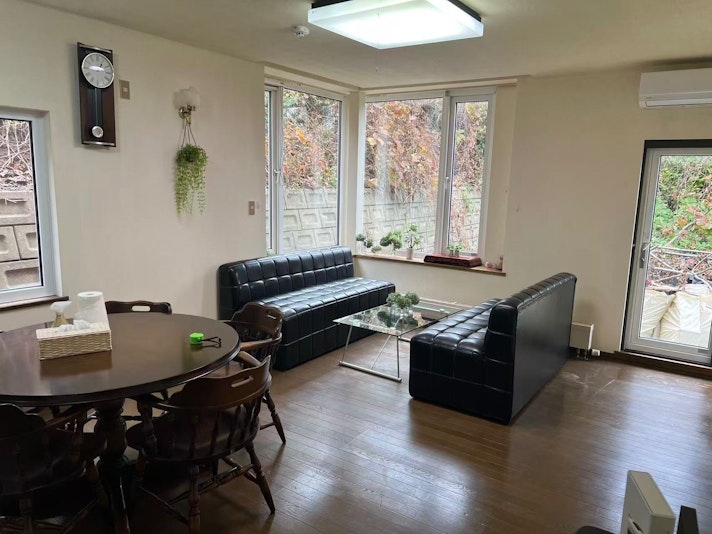 一軒貸切。4ベッドルーム、最大10名宿泊可。無料駐車場完備。空港送迎、多言語対応、ツアー手配も可能。