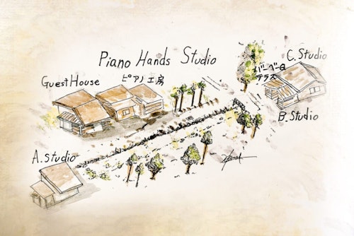25坪ゲストハウスと、ピアノ2台、BBQ可、バンド演奏可能な3つの音楽スタジオ完備。