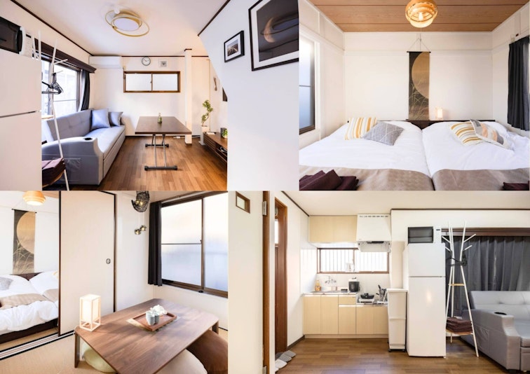 都心好アクセス。観光・ビジネス最適。カップル・家族に。ベッド2台、布団2組、アメニティ充実。