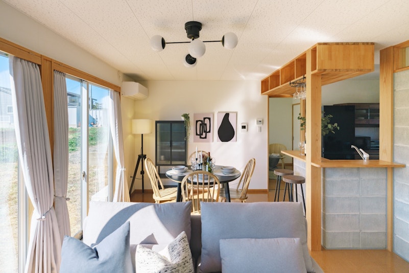 フルリノベ2LDK平屋。庭と一体化、自然満喫。キッチン、洗濯機、NETFLIX完備で長期滞在にも。