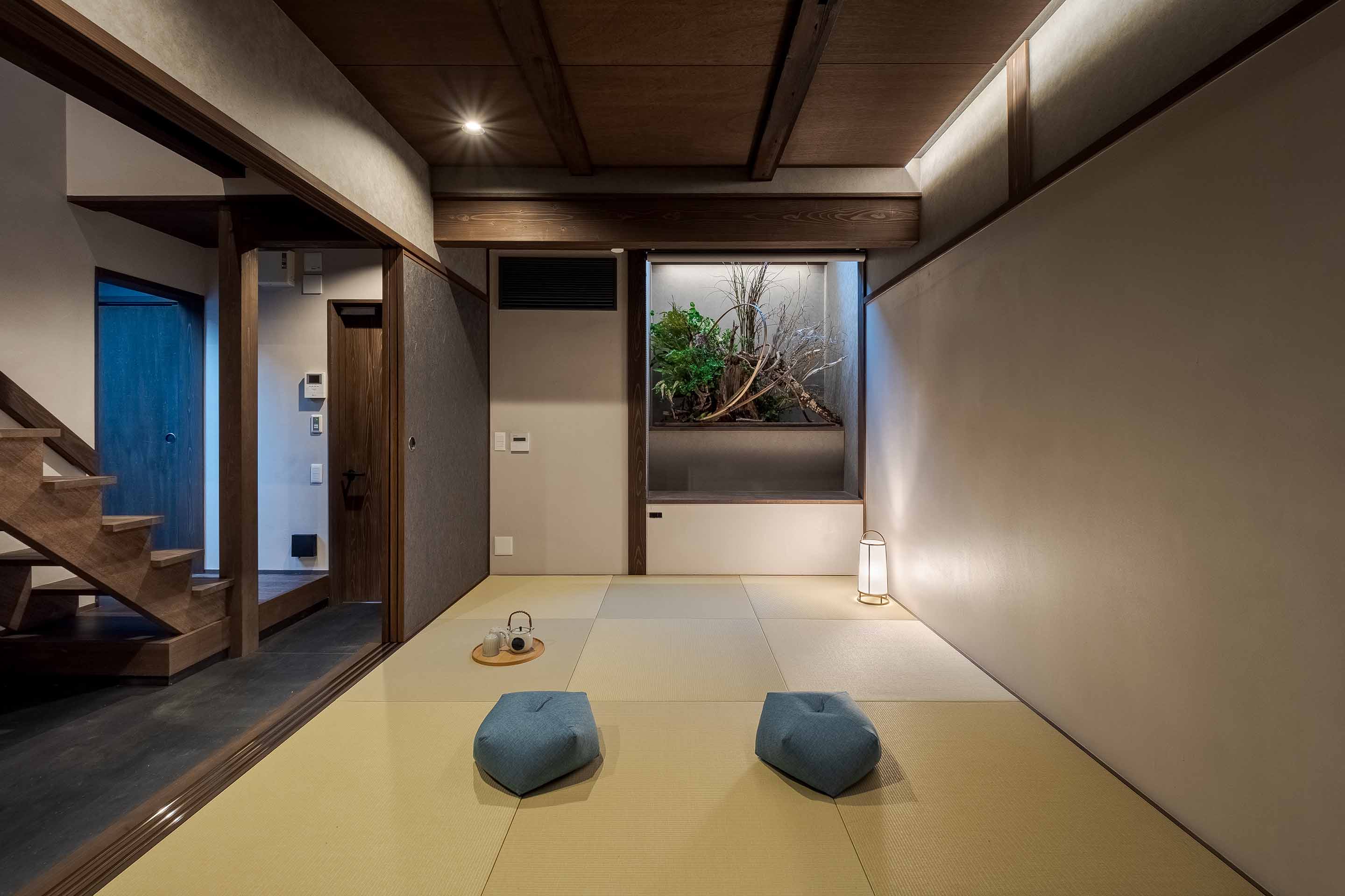 1・2階にそれぞれ和室がございます。モダンな雰囲気を持つ琉球畳の上でご自由にお寛ぎください。