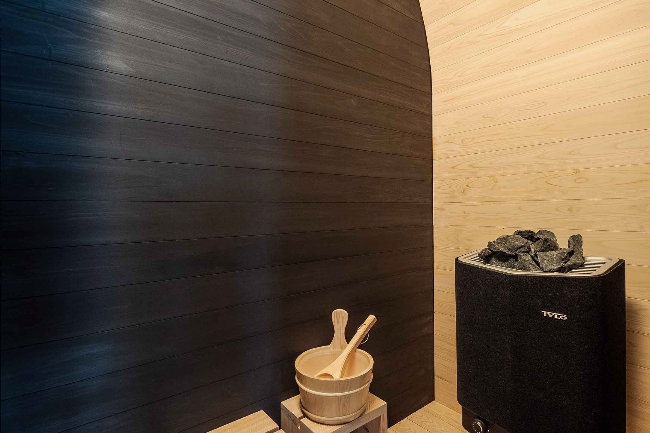 いつでもお好きな時間にリラックスできる高山産ヒノキのドライ式サウナや、温冷交代浴が楽しめる2つの浴槽を設えた浴室で心おきなくリラックスいただけます。